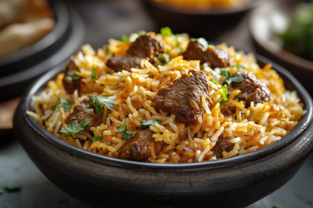 Goat Biryani is a fragrant and flavorful dish made with tender goat meat cooked in layers of spiced