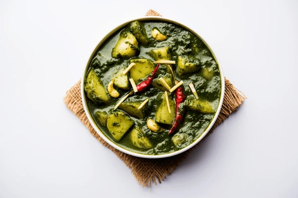 Creamy spinach curry with tender cubes of paneer, spiced to perfection.